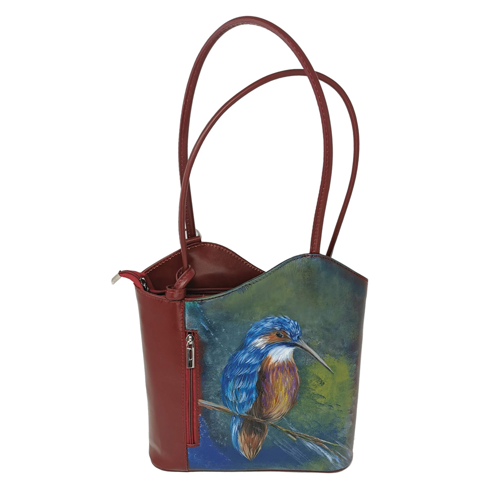 This is one of a kind hand painted bag. Genuine Italian Leather Shoulder Bag with a unique top zip openings and  with twin strap which can be arranged to convert bag into a backpack.